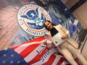 Yomary Rojas, esposa de Aquiles Rojas, entre los nuevos ciudadanos estadounidenses