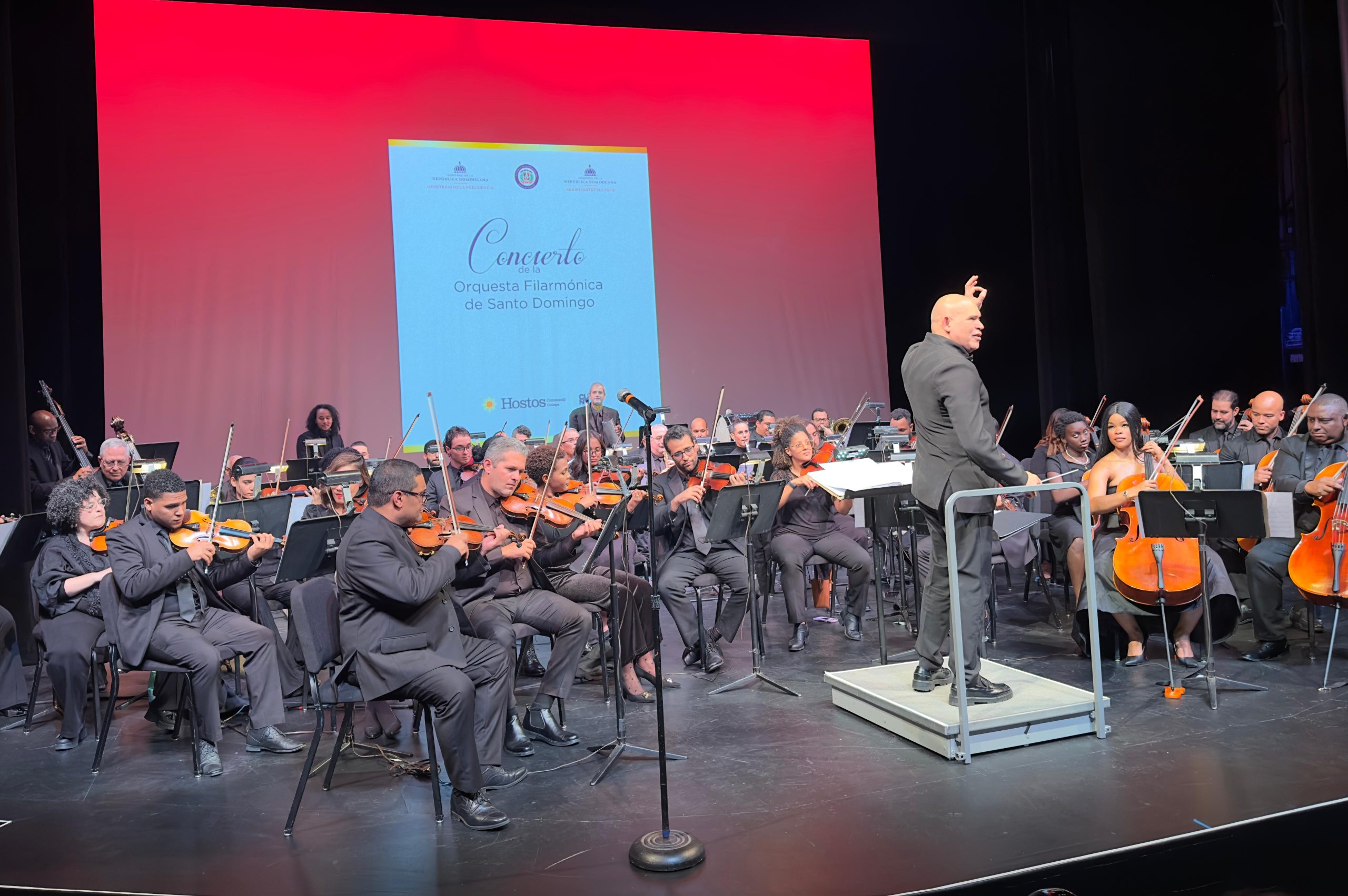 NUEVA YORK. – El Consulado General de la República Dominicana en esta ciudad, junto a los Ministerios de Cultura, de la Presidencia de la República y Salud Publica, celebraron un inolvidable concierto con la Orquesta Filarmónica de Santo Domingo, presentado en el auditorio de Hostos Community College, donde los dominicanos se dieron cita para disfrutar de una noche cargada de identidad, emoción y orgullo patrio.