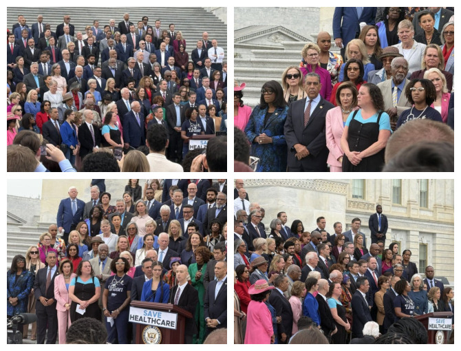Washington, D.C., 30 de septiembre de 2025 — «Estamos aquí, listos para trabajar, mientras los republicanos están de vacaciones». Con estas palabras, el congresista Adriano Espaillat (NY-13) encabezó este martes una protesta masiva en las escalinatas del Capitolio, junto a líderes del Caucus Hispano (CHC), el Caucus Negro (CBC), el Caucus Progresista y otros grupos demócratas, para exigir que se evite el cierre del gobierno y se protejan los programas de salud que benefician a millones de estadounidenses. La fecha límite para aprobar el financiamiento federal vence esta semana, pero los republicanos, en lugar de negociar, extienden sus vacaciones y dejan en riesgo la cobertura médica de 4 millones de personas.