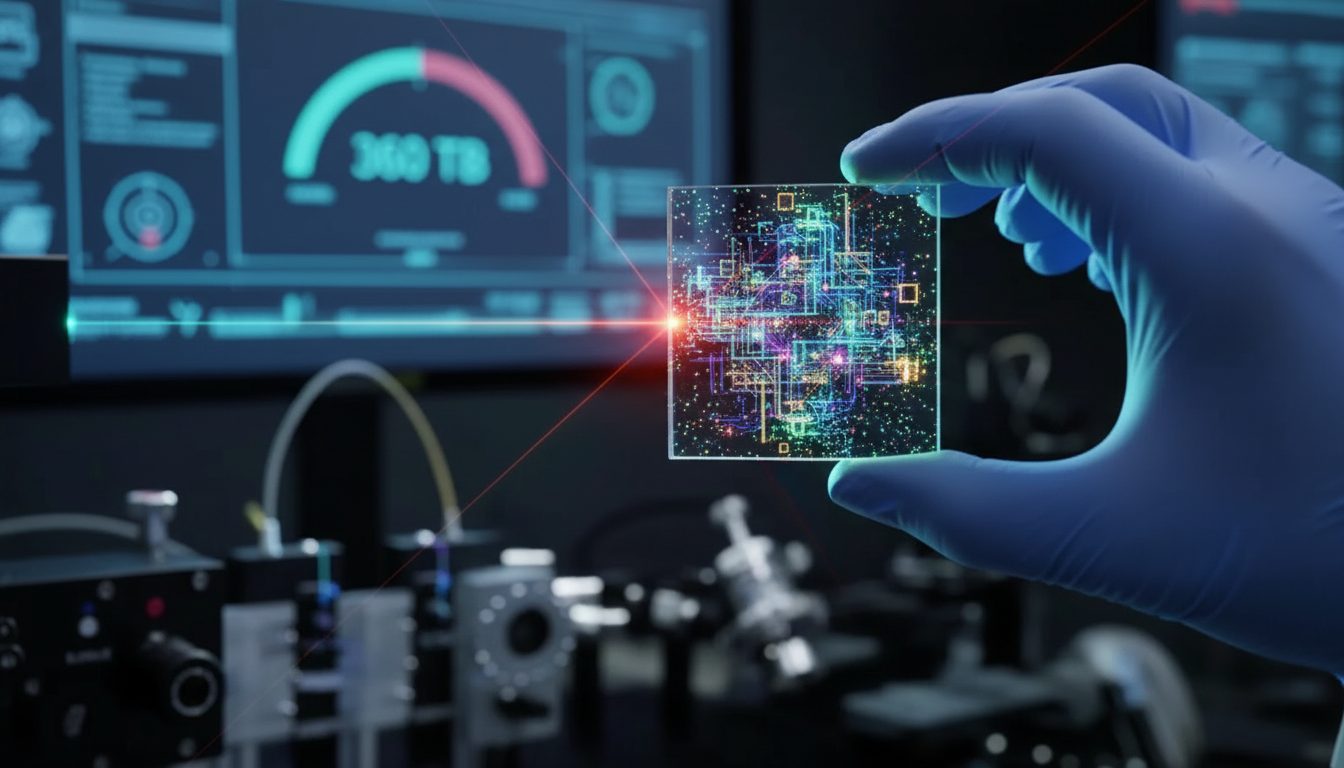 - Capacidad: Exabytes en un solo cristal (equivalente a millones de discos duros).