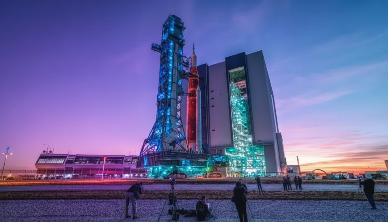 • El cohete será movido lentamente hacia la plataforma 39B, donde se realizarán las últimas preparaciones antes del lanzamiento.