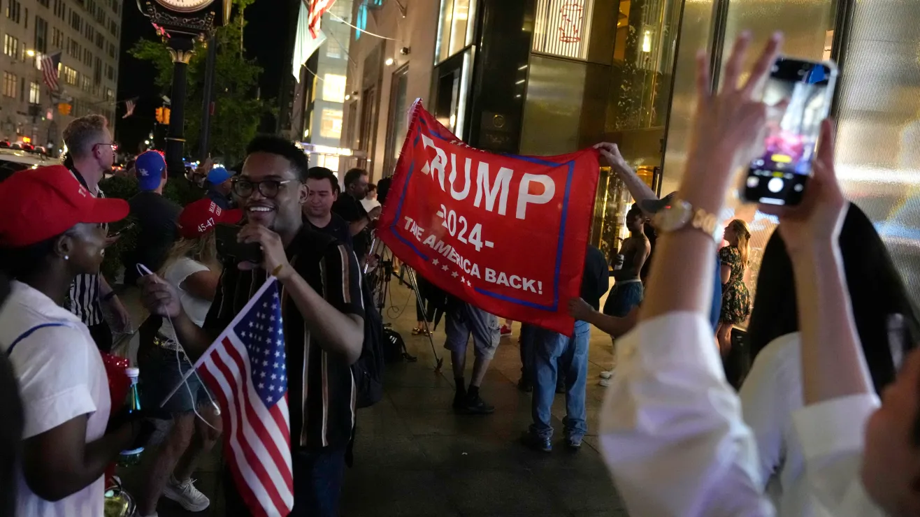 Algunos seguidores de Donald Trump pernoctaron a las afueras de la Torre Trump para manifestar su solidaridad y apoyo al expresidente tras ser herido en la oreja en un mitin en Pensilvania.
