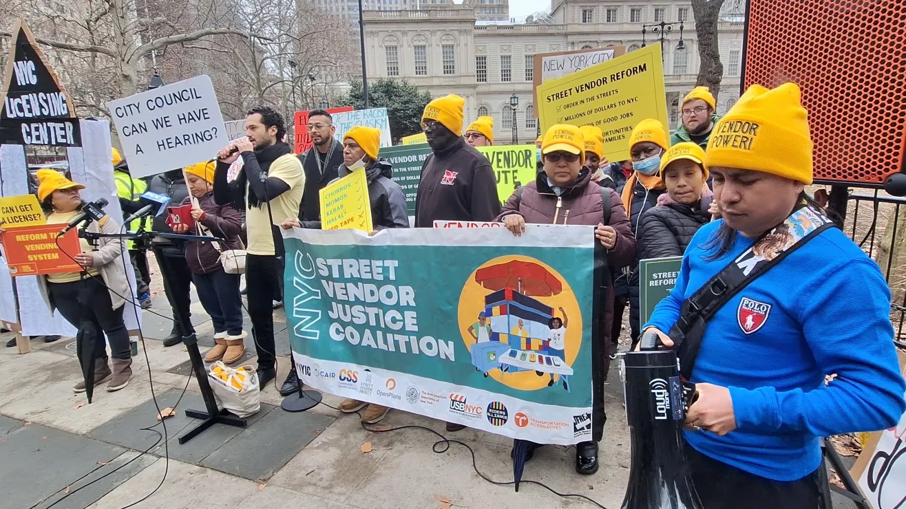 Este jueves, concejales, líderes electos y vendedores ambulantes exigieron frente a la Alcaldía la aprobación de un paquete de leyes que crearía una División de Asistencia a los Vendedores Ambulantes dentro del Departamento de Servicios para Pequeñas Empresas (SBS). Esta división ofrecería capacitación y educación, y facilitaría la asignación de más licencias y espacios públicos para trabajar sin temor a multas y desalojos.