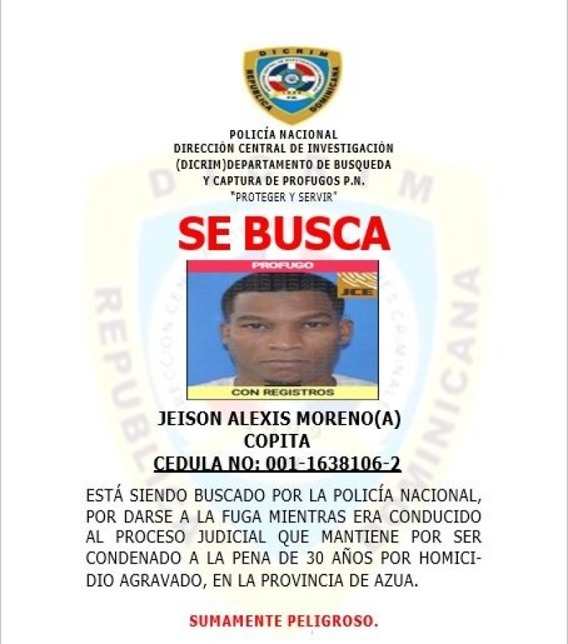 Hashtags: #CopitaPrófugo #TripleHomicidio #DICRIM #JusticiaRD #AlertaPolicía