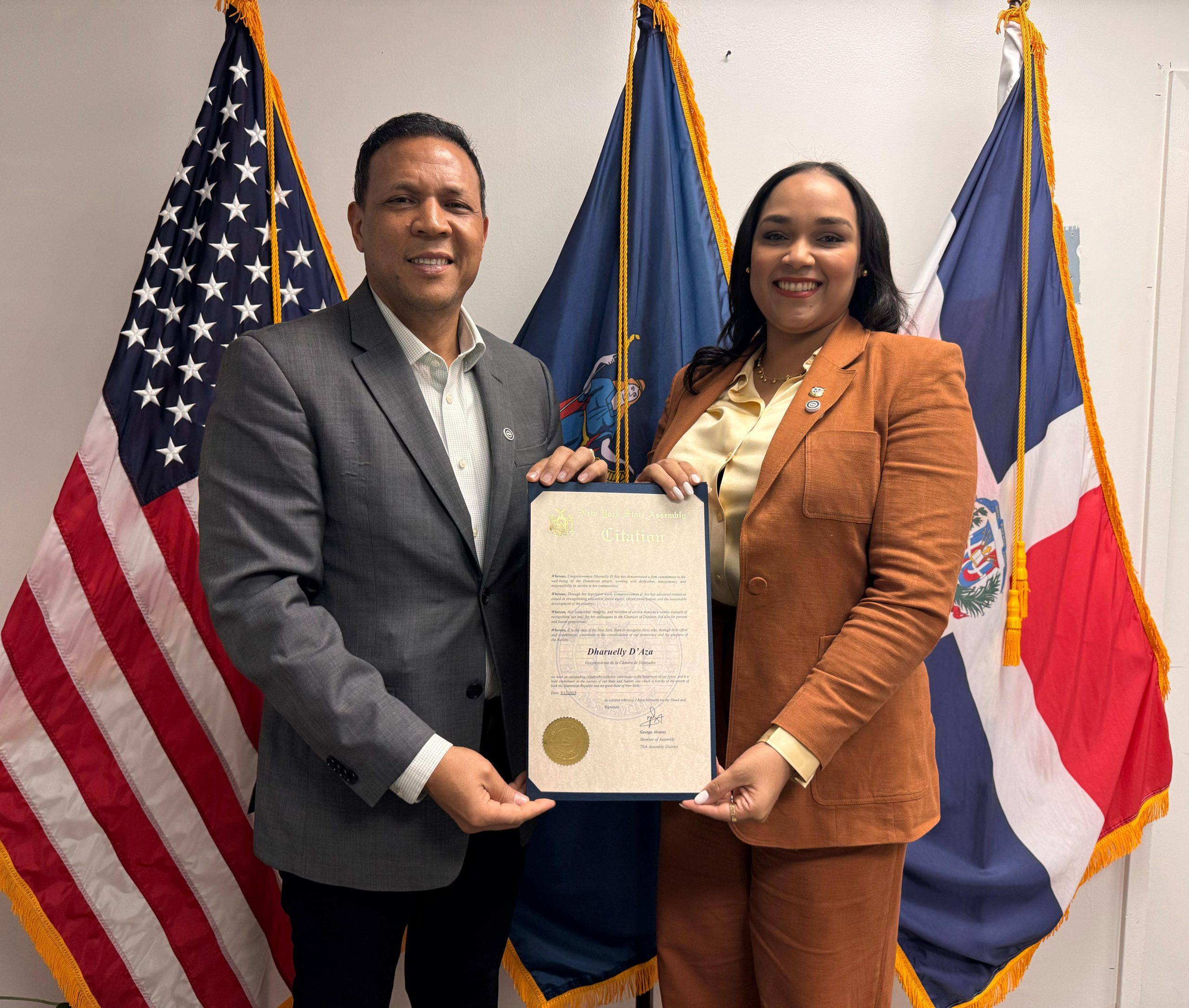 NUEVA YORK. – La vicepresidenta de la Cámara de Diputados de la República Dominicana, Dhareully D’ Aza, realizó este viernes una visita de cortesía al asambleísta del Estado de Nueva York, George Álvarez, representante del distrito 78 en el Bronx.